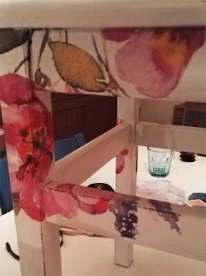 I dag måtte jeg prøve meg på decoupage dekorering. Har brukt serviettdecoupage på glasslykter, og små ting tidligere, men fant ut at teknikken må jo også være brukandes til dekorering av møbler...