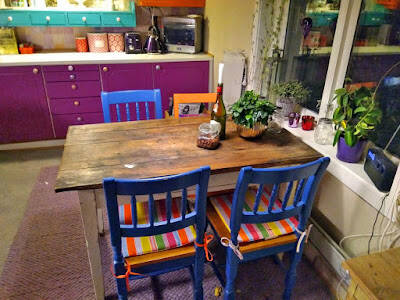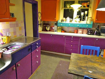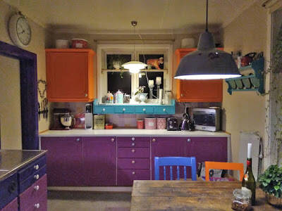 Legger ved noen bilder av kjøkkenet slik det ser ut nå - med rot og alt ;) Det heter seg at man blir glad av farger...