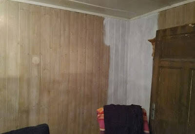 Nå har tiden kommet for å male stuepanelen. Det heter seg det at man bør male på denne tiden av året, fordi da er panelet på sitt tørreste. Da unngår man kanskje at panelen trekker seg sammen, og etterlater ufine loddrette striper... :)