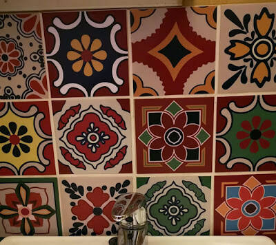 Viktig da er å finne motiver som er i akkurat samme størrelse som de flisene du har fra før, da vises fugene og det hele ser ut som om du har lagt nye fliser. Mine vinylklistremerker fant jeg på Ebay, men det finnes sikkert andre som tilbyr det samme.