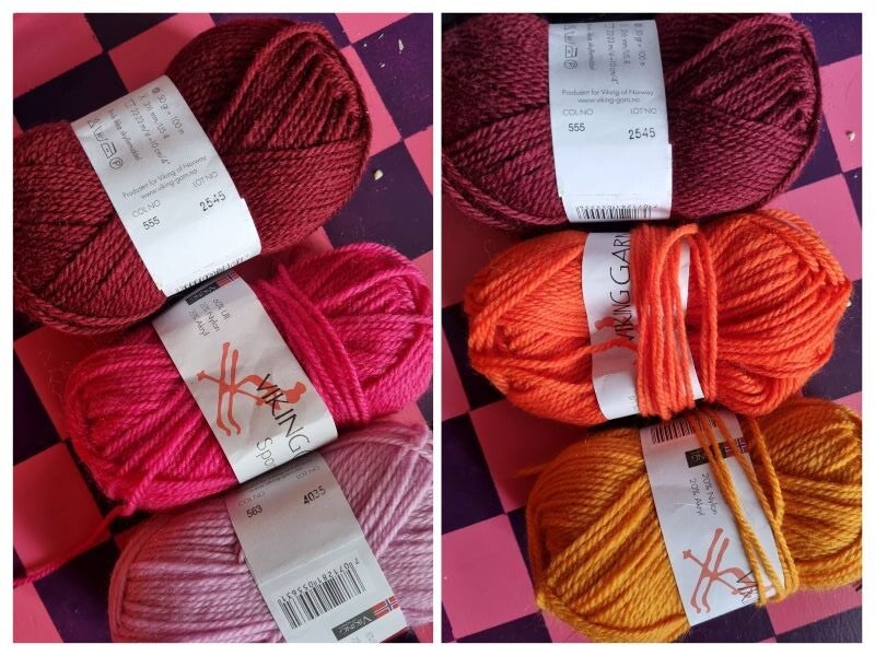 Det er sånn lite og enkelt prosjekt å ta frem, og ta med… i motsetning til store omfangsrike gensere.. Dessuten er halve morroa å finne nye morsomme fargekombinasjoner. Sikkert derfor jeg har så lett for å starte på et nytt prosjekt uten å gjøre ting ferdig. Det er fargekombo som er gøy 🤪