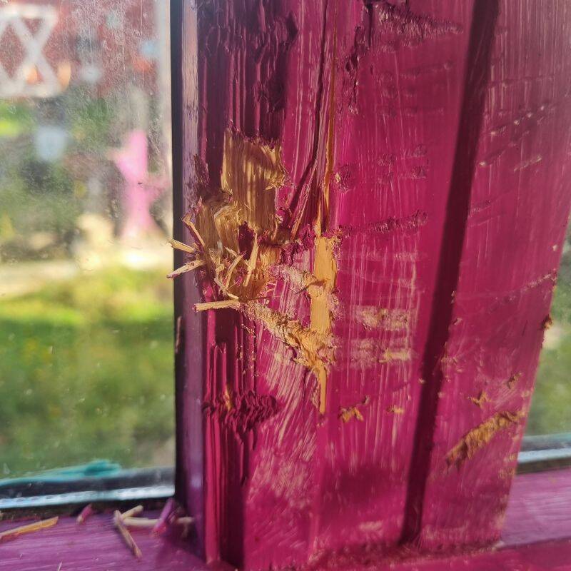 Jeg begynner å bli litt lei av at min nevrotiske hund lar sin frynsete psyke gå ut over vinduene mine. Han river ned alt i vinduskarmene, og gnager på vinduene når han er alene hjemme. Stenger jeg dører, så gnager han dem i stykker også. Om det er et forsøk på å komme seg ut, eller om det er andre grunner aner jeg virkelig ikke, men det må stoppe… Derfor har jeg nå gått til det skritt å dekke til alle vinduene med vindusfolie, i håp at den manglende utsikten vil stoppe gnagingen..